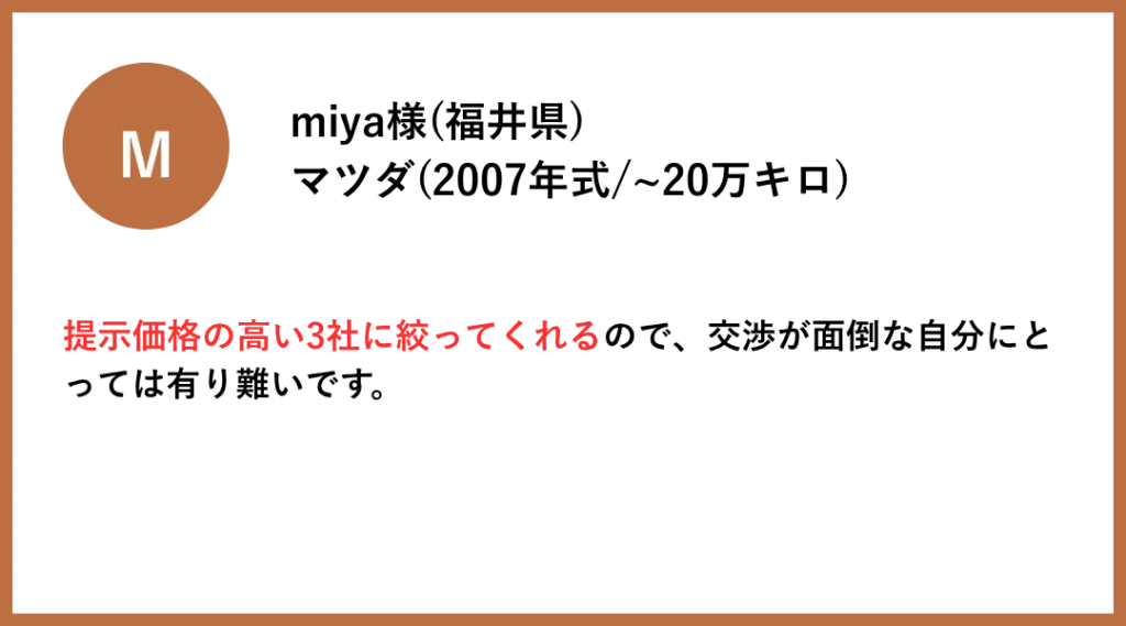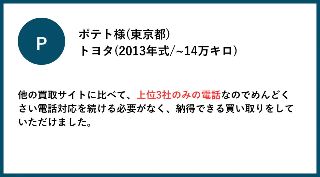 一括査定特有の「電話ラッシュ」に悩まされることなく、効率よく最高額の業者だけを比較できます。