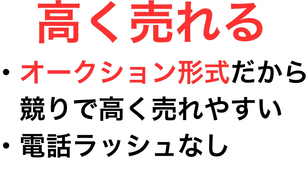 そこで便利なのが、数千社が登録するオークション型サービス。一度の申し込みで複数業者が競り合うため、誰でも簡単に効率よく最高値を狙えます。
