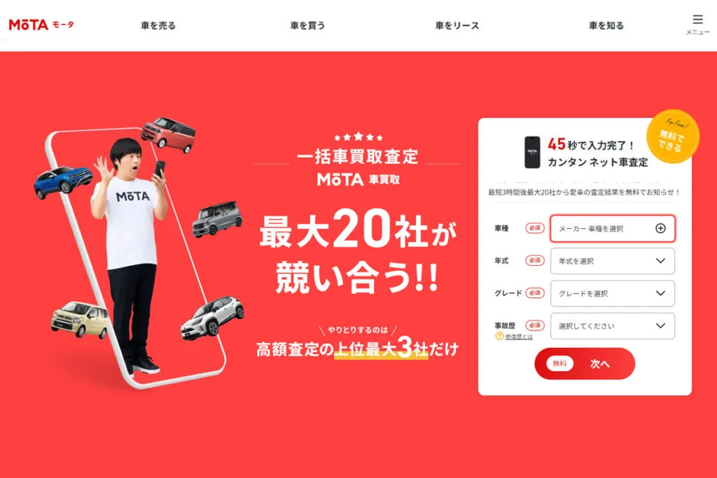 通常の一括査定サービスと同様に最大20社が競り合うため、より高額な査定が期待できるだけでなく、MOTA独自の事前査定方式により最短3時間で概算査定額を提示。しかも、ここまではすべてWeb上で手続きを進められます。